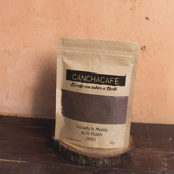 Café peruano, tostado y molido, de granos arábica seleccionados.